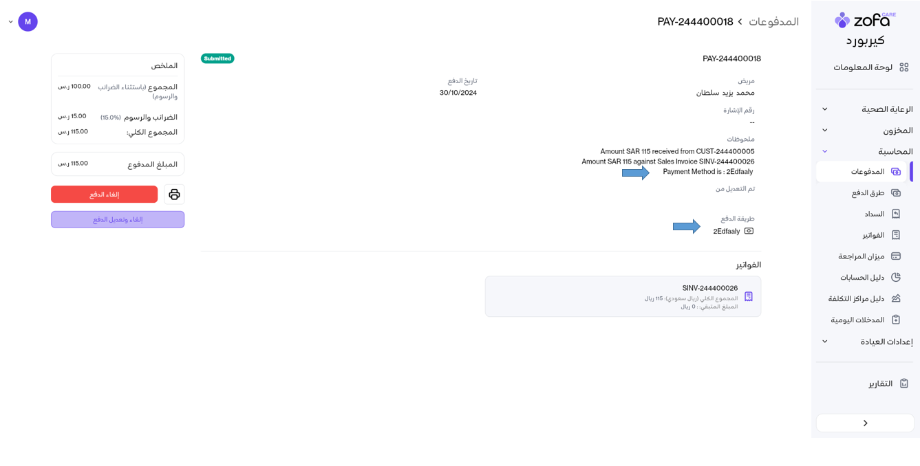 سوف تظهر الفاتورة و طريقة الدفع ايضا (updated 30/10/2024)