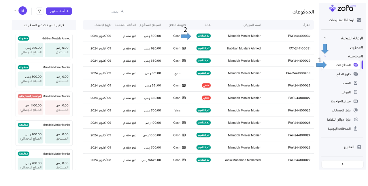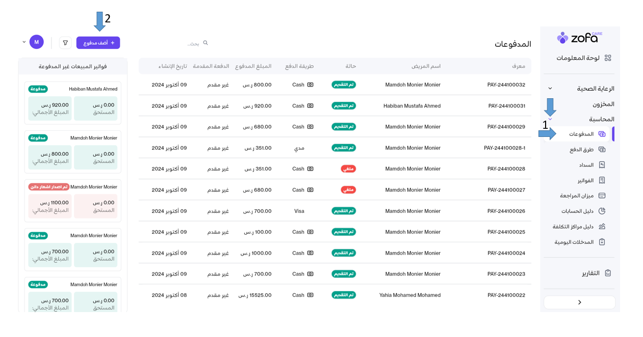 1-من المحاسبة اختر المدفوعات من المحاسبة
