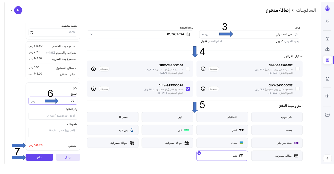 4-حدد المبلغ المطلوب للدفع دفعة مقدمة