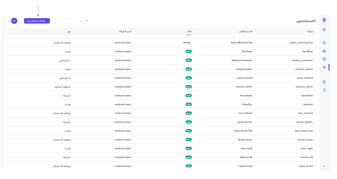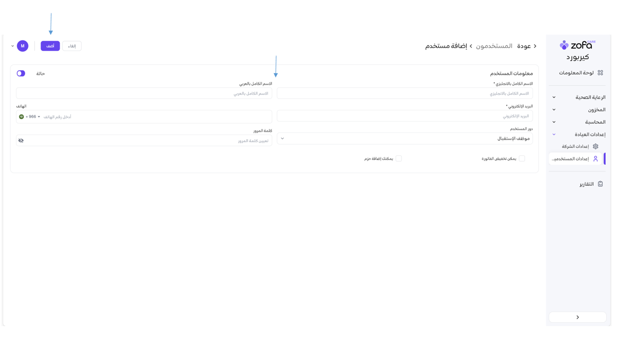 - الضغط على اعدادات المستخدمين من إعدادات العيادة