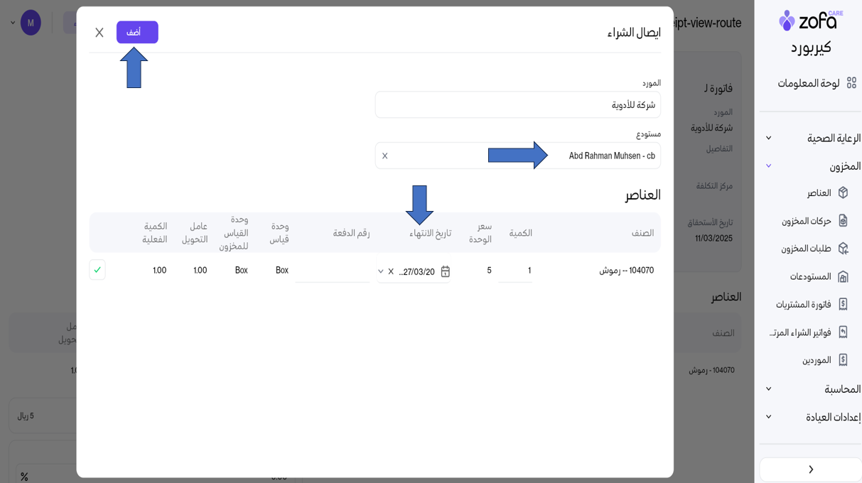 -إيصال الشراء والذي من خلاله نتمكن من توزيع العناصر المشتراه على المستودعات