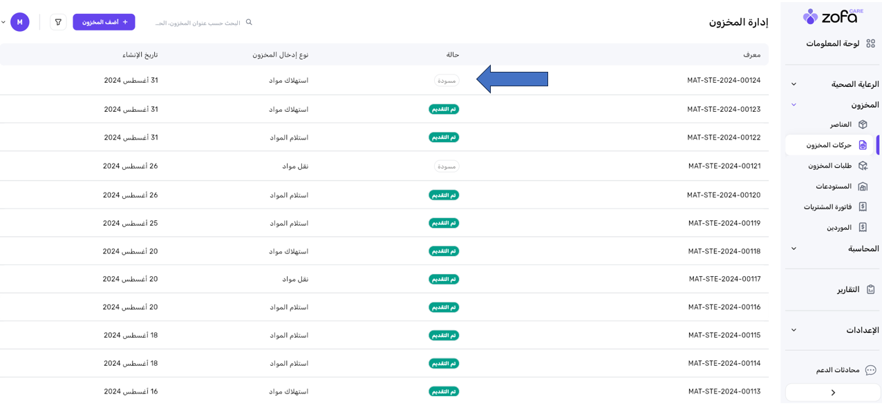 يمكنا أيضًا تعديل المخزون في حالة مسودة