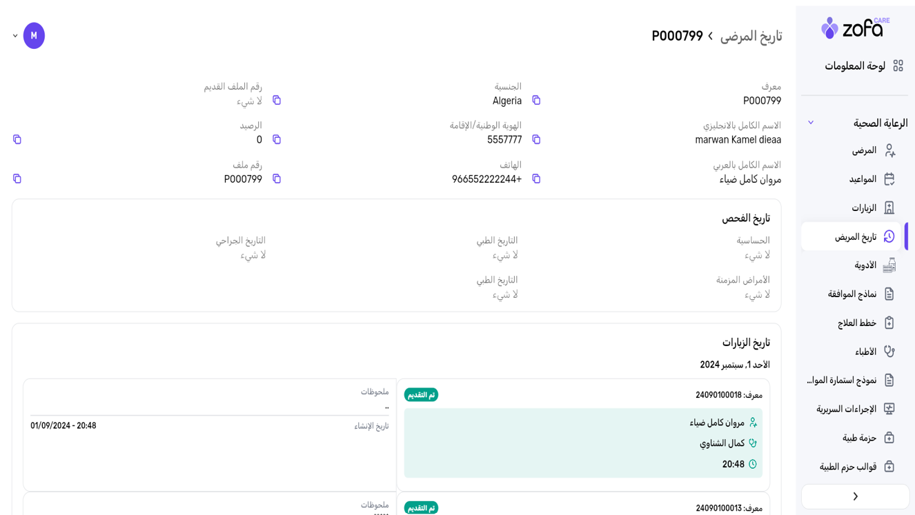 يظهر معنا تاريخ المريض