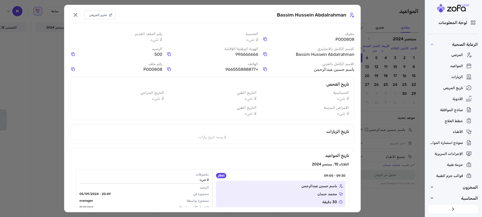 -هناك أيضا** طريقة ثانية** لمعرفة تاريخ المريض وهي عند حجز موعد