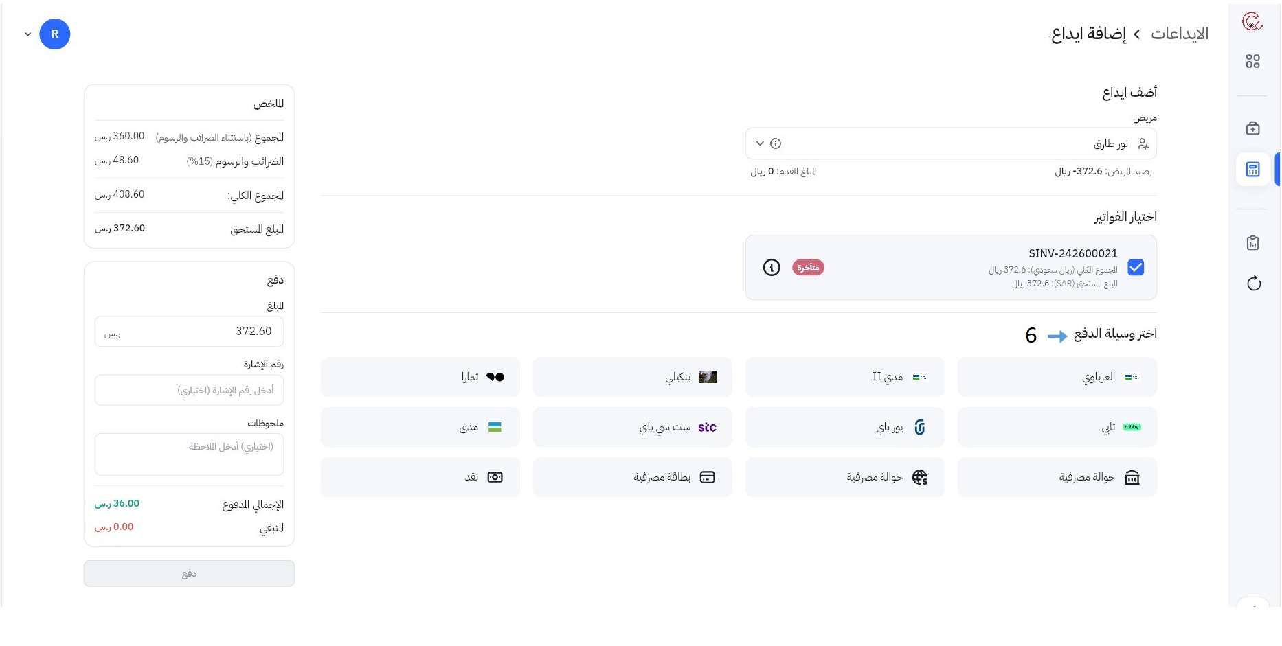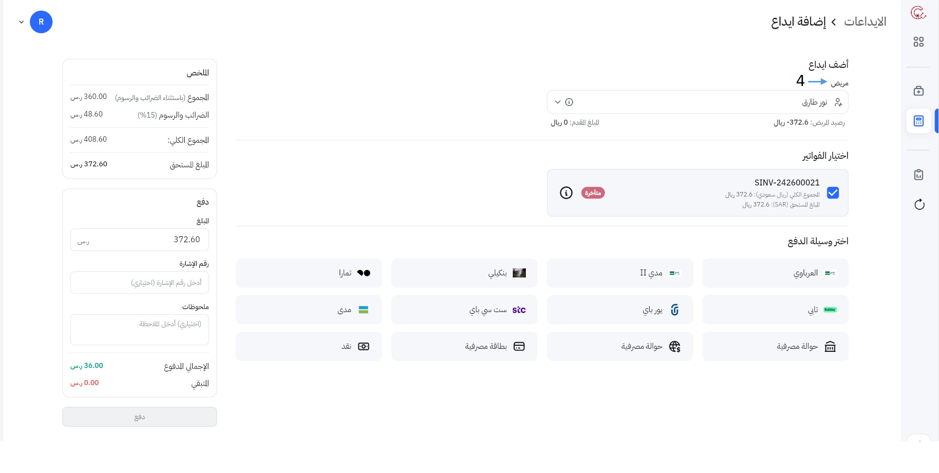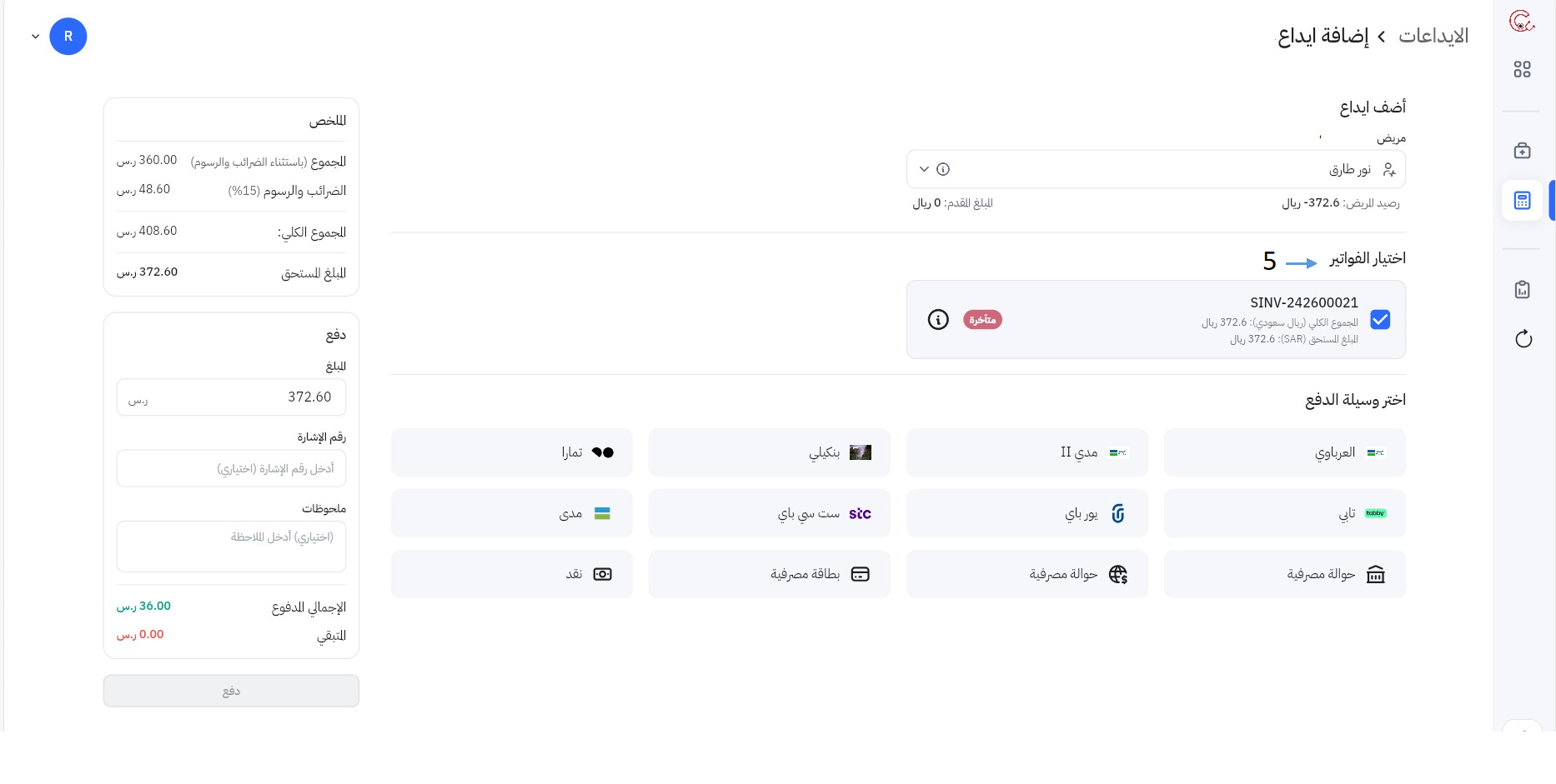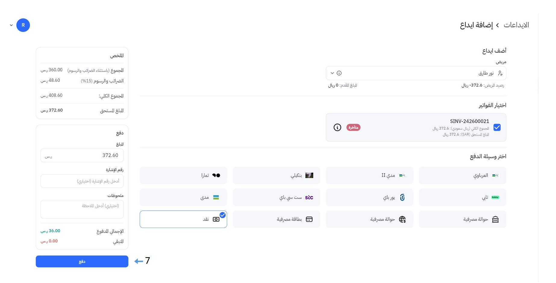 6. احدد وسيلة الدفع ادخال المبلغ بالكامل.
