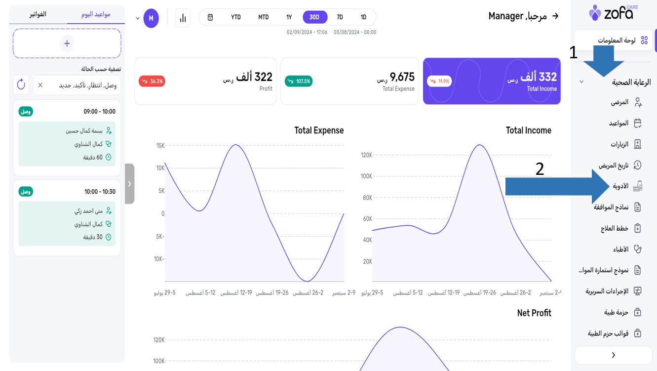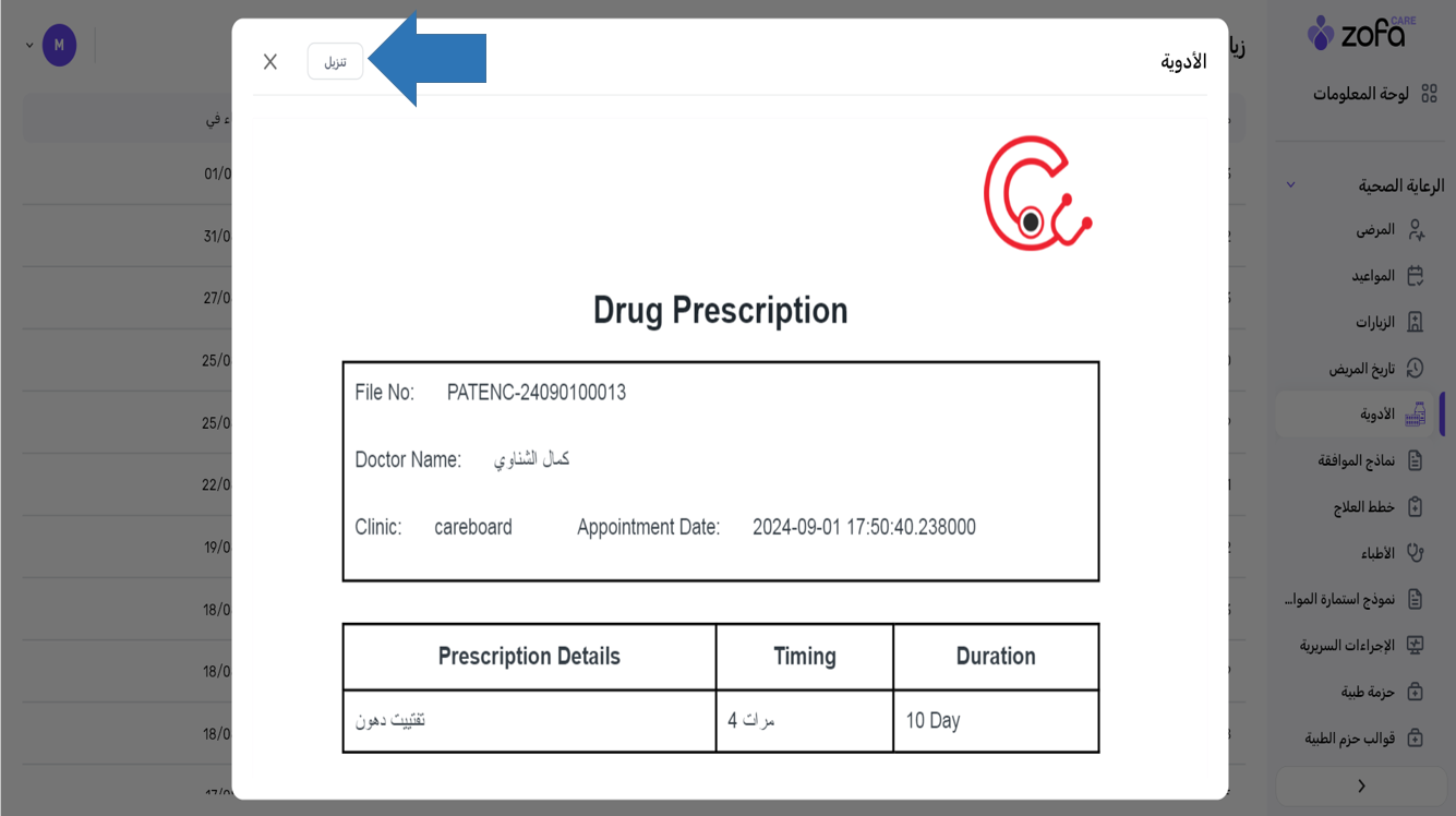 يمكن معرفة الادوية التي كتبها الطبيب للمريض و طباعتها :