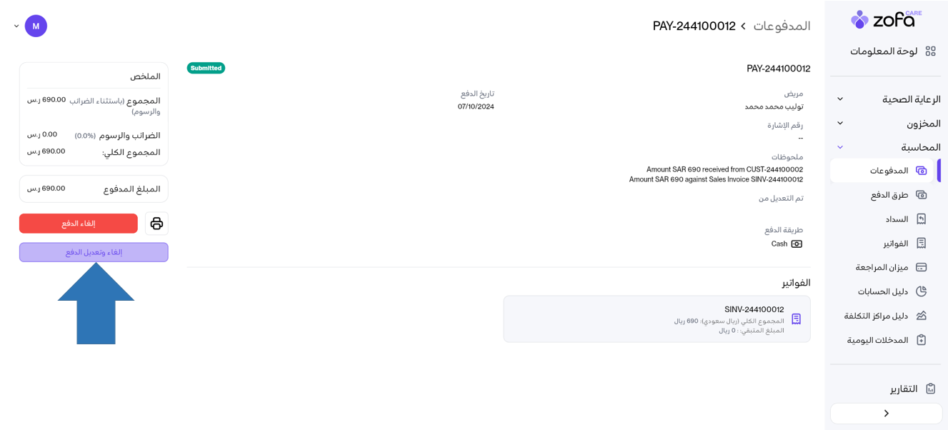#سنرى الان كيف نقوم بتعديل طريقة الدفع التي تم دفع بها بالفعل فاتورة معينة#