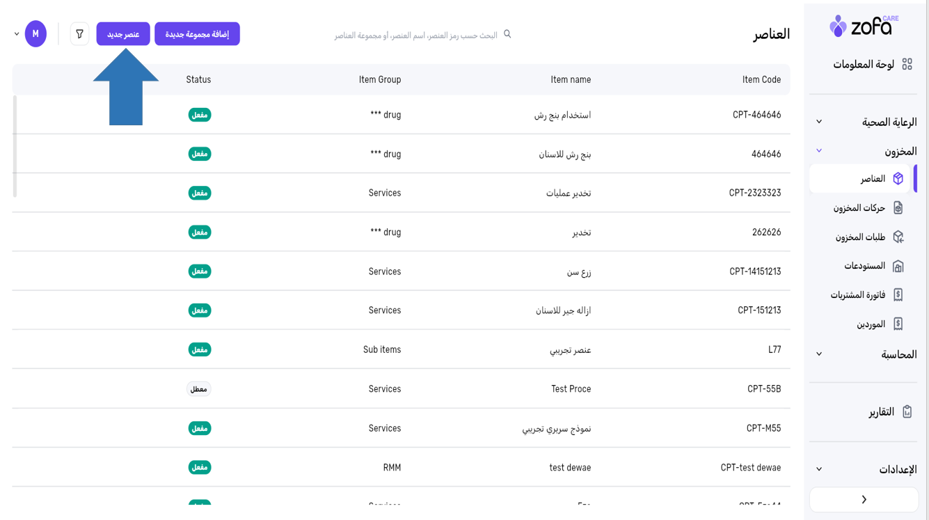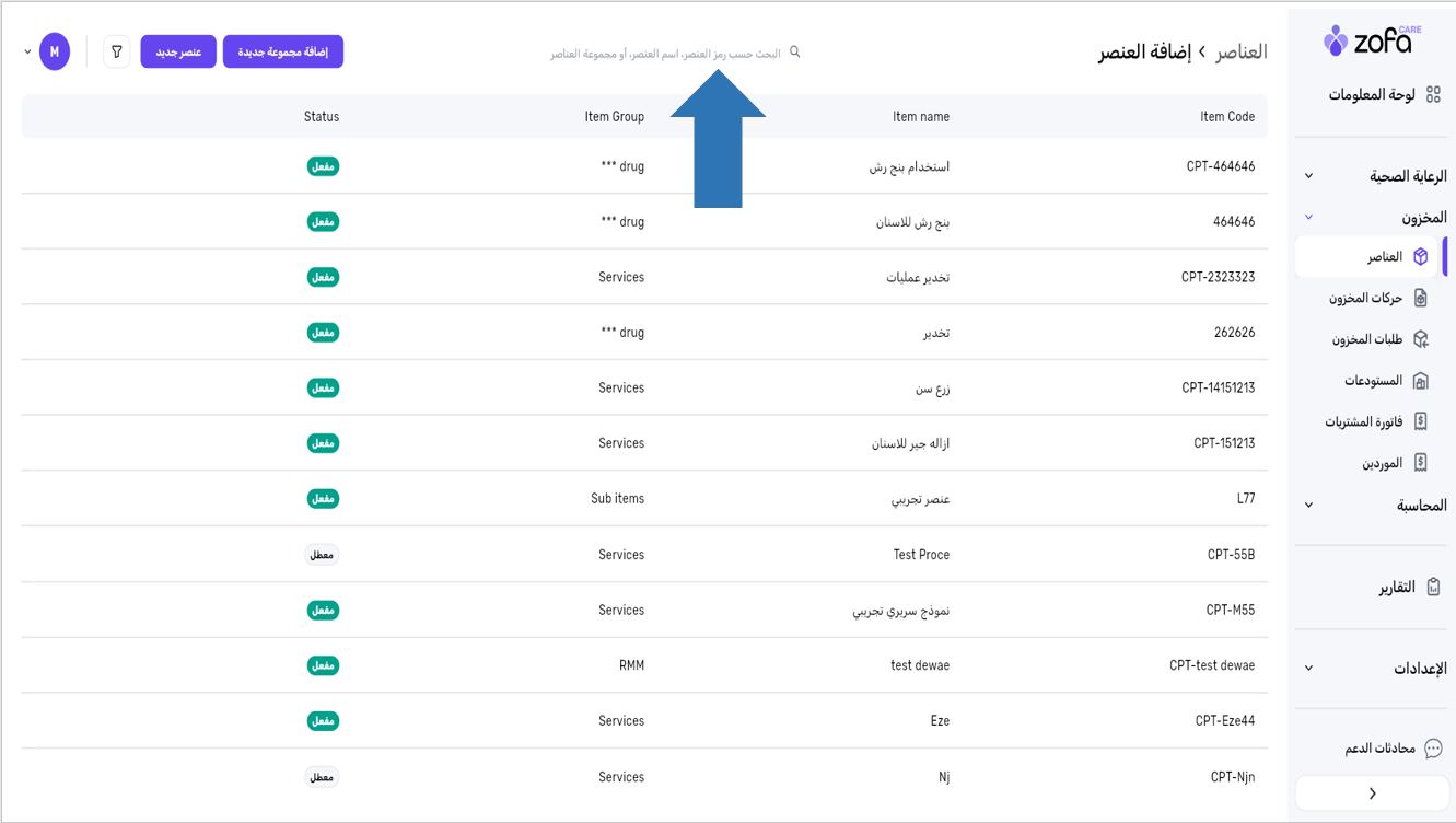 يمكن البحث عن اسم العنصر من خانه البحث بالاضافه انه يتم اضافته في الاجراءات السريريه المناسبه له