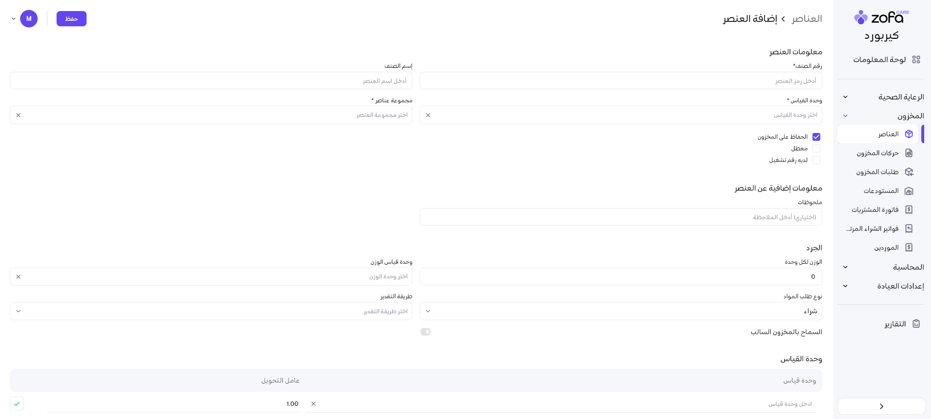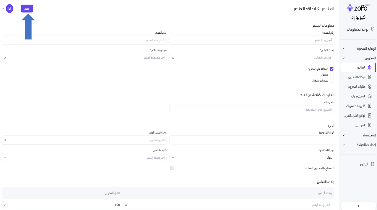 -وبالأخير في خانة وحدة القياس يمكننا اضافة اكثر من وحدة قياس للعنصر الواحد
