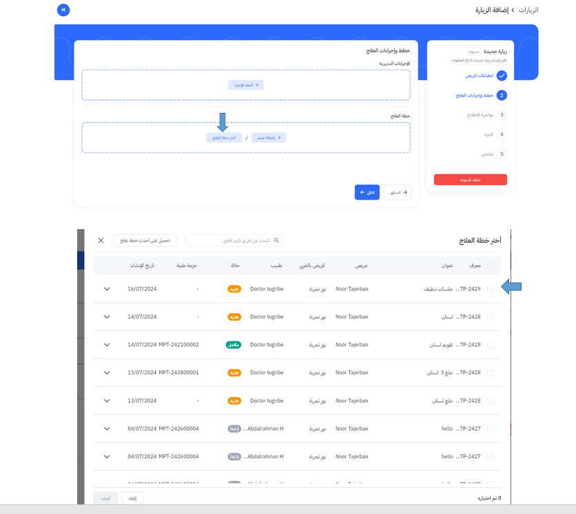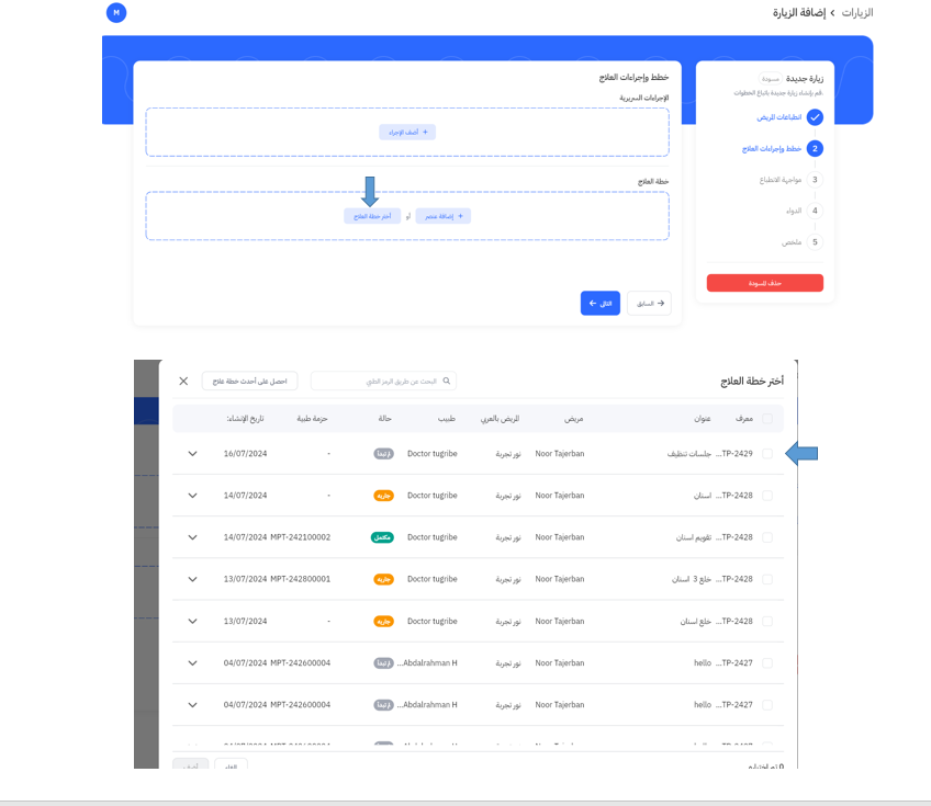 5-    اختار نفس خطة علاج المريض ، و سوف نلاحظ ان خطة العلاج جارية