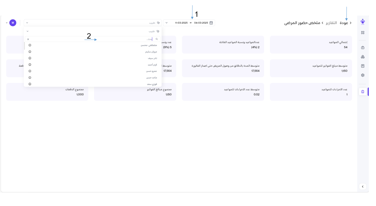 2- يمكنك تحديد اسم الطبيب المراد معرفة إجمالي المواعيد الخاصة به