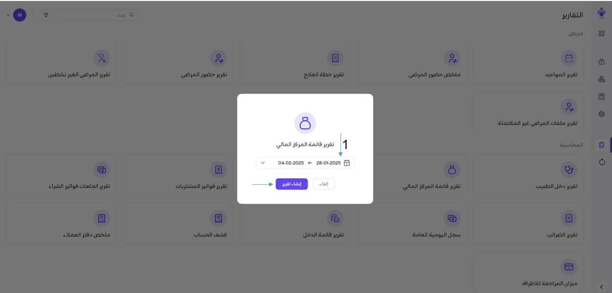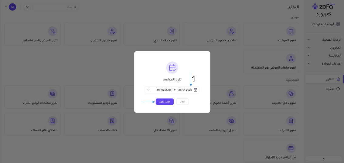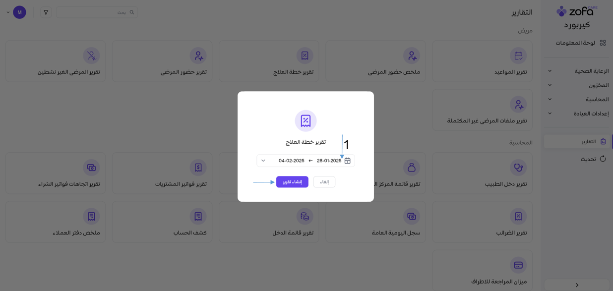 1- تحديد المدة الزمنية ثم الضغط على إنشاء تقرير