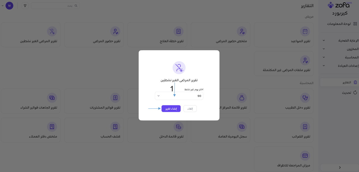 1- اختر يوم غير نشط ثم الضغط على إنشاء تقرير
