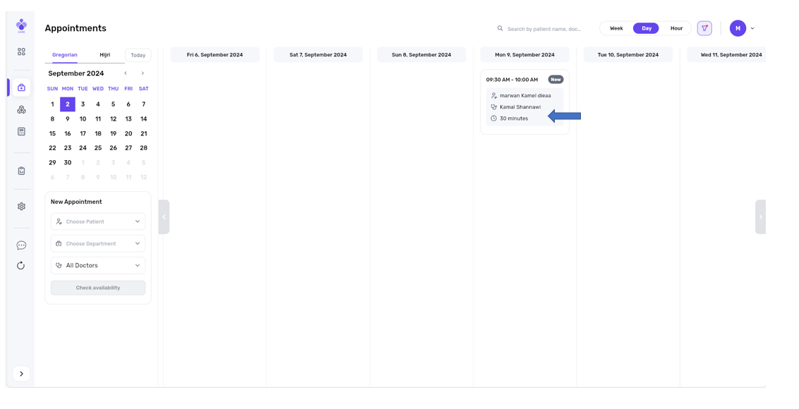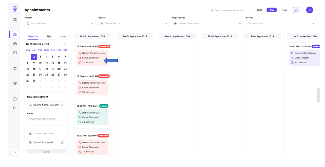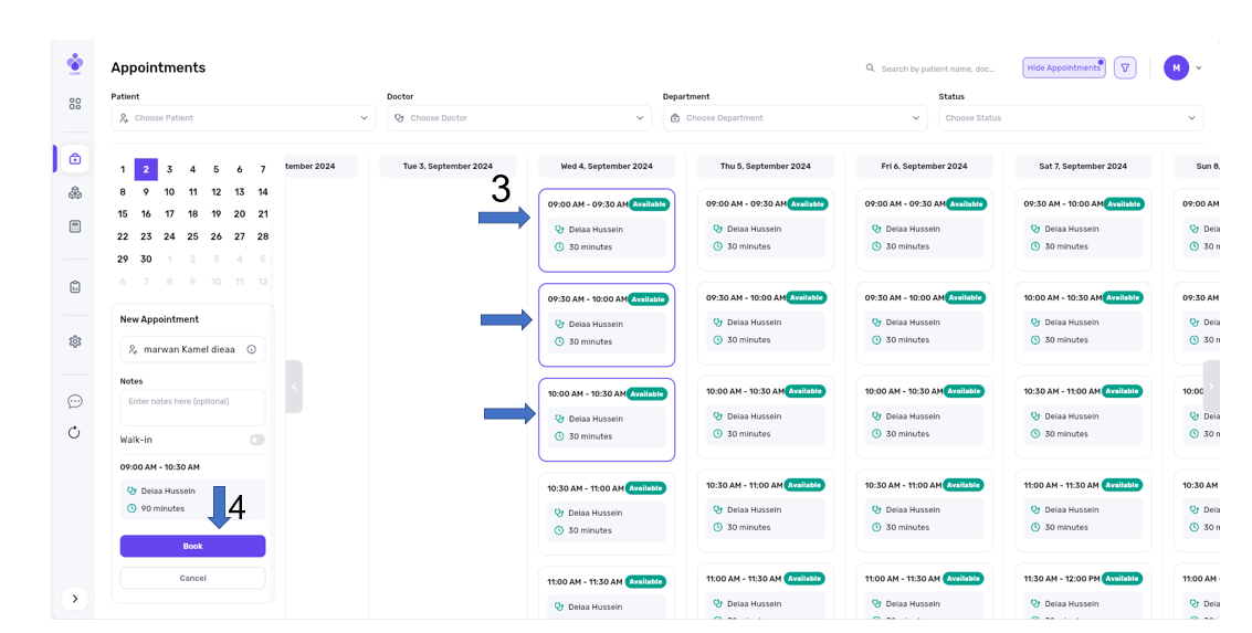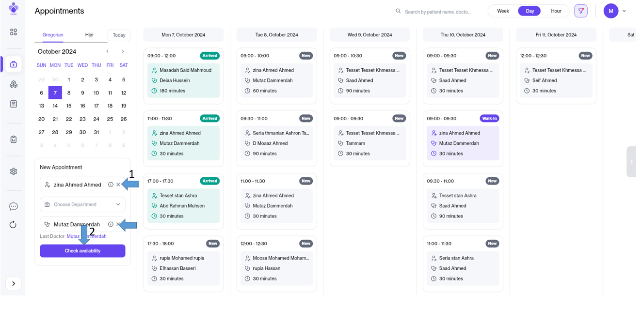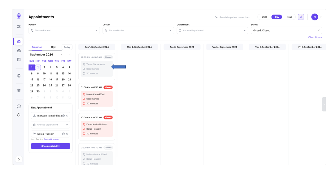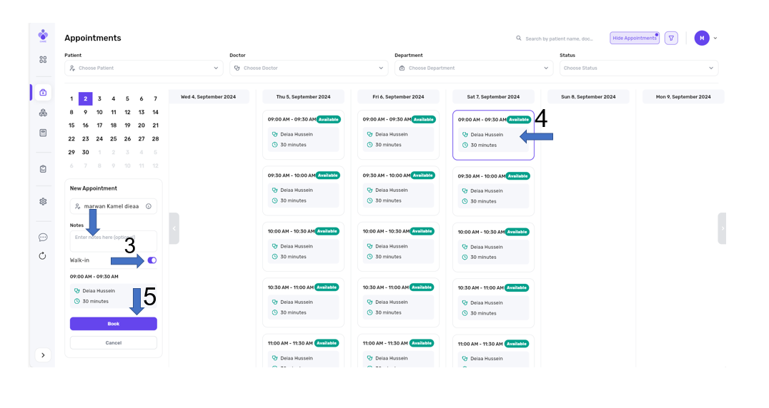 6- walk in appointment appears in case we have a patient want to book on spot appointment