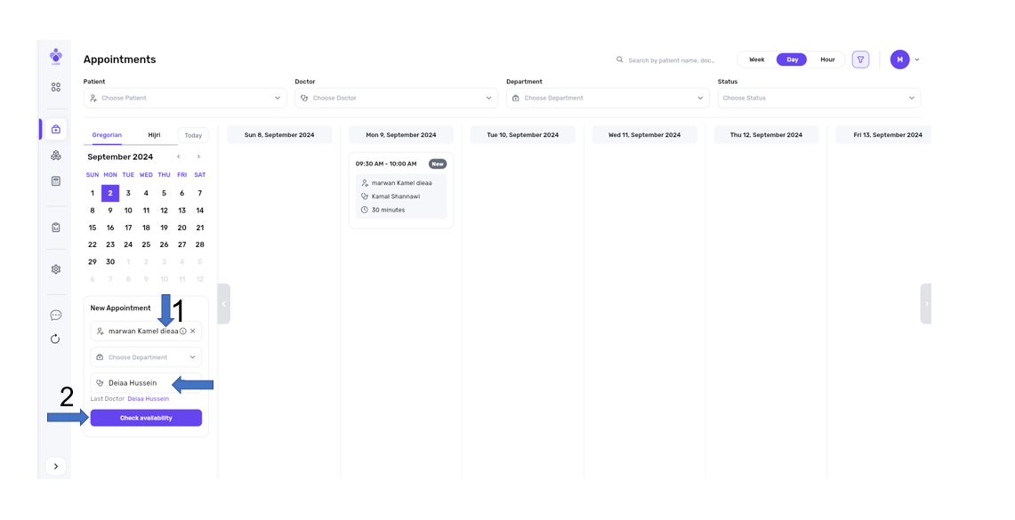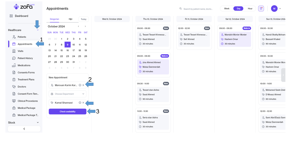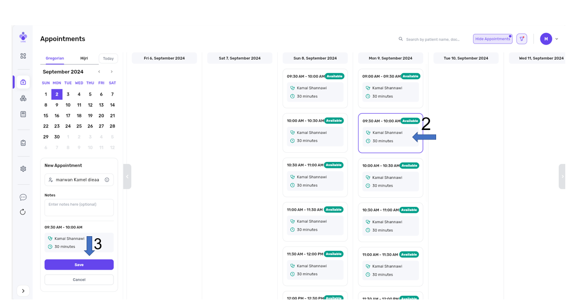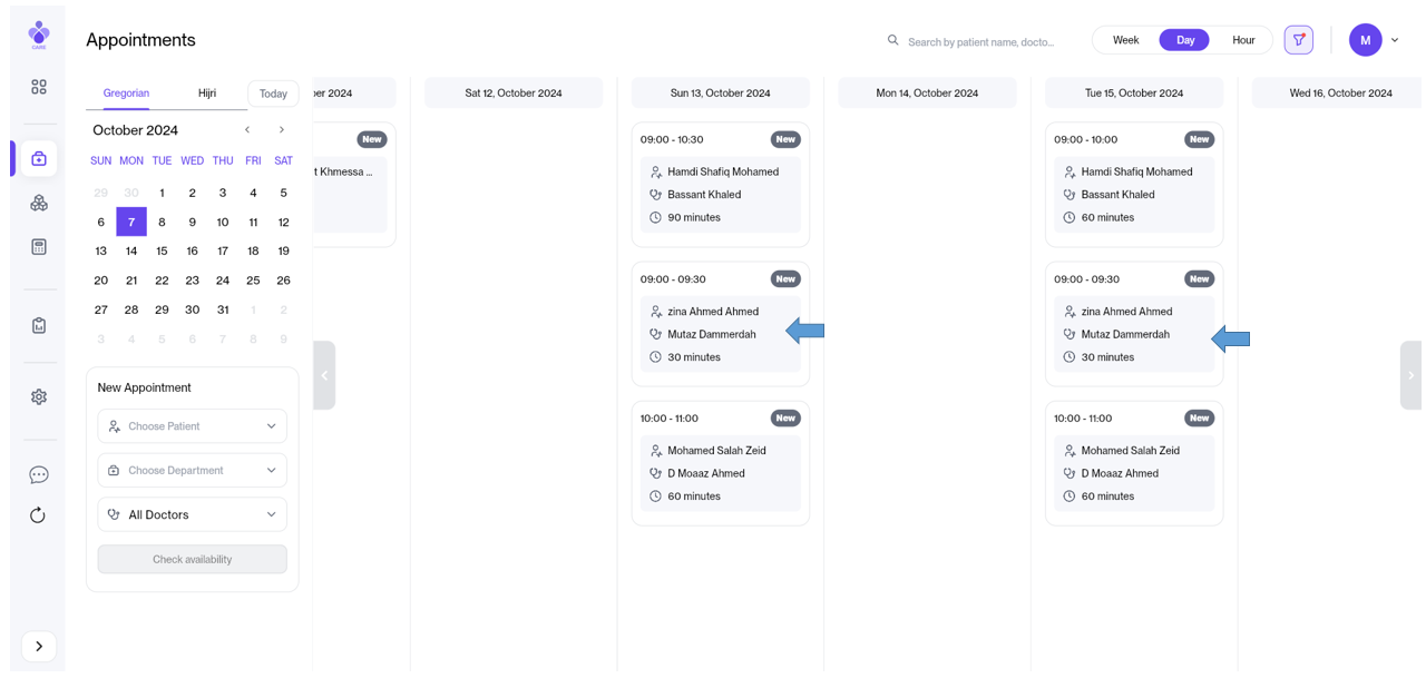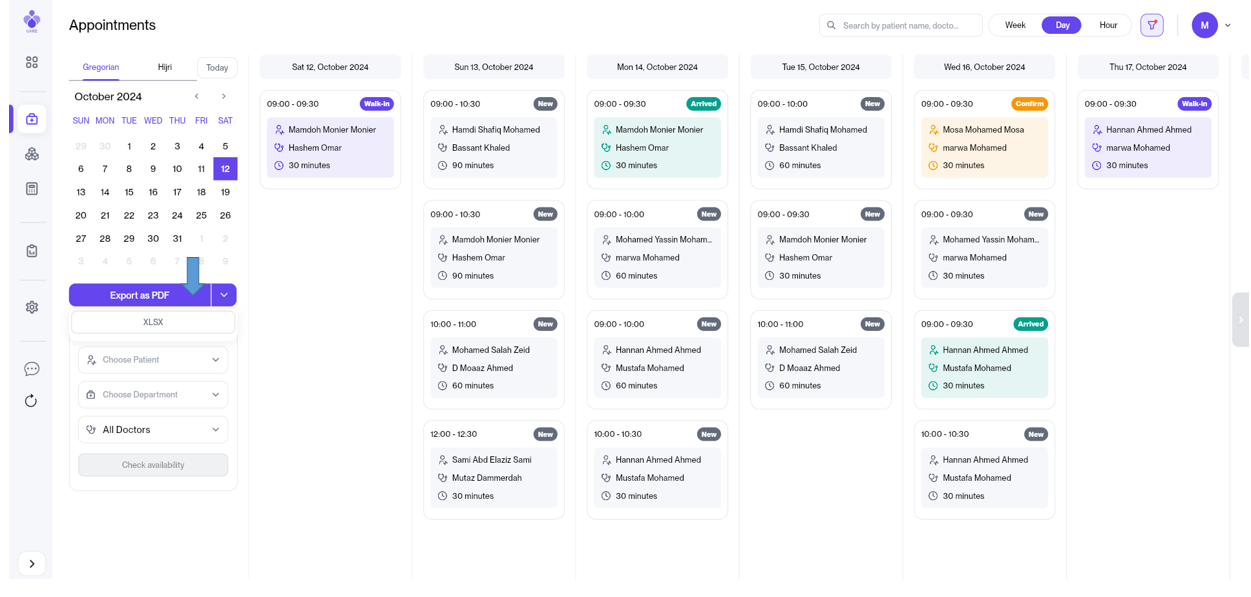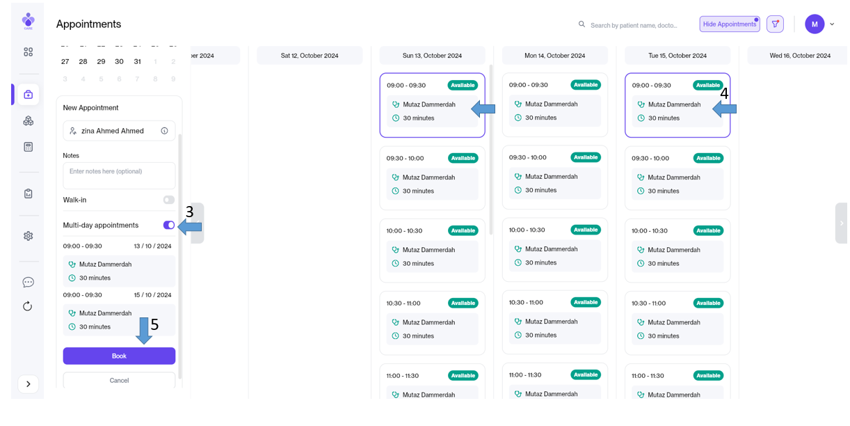 6- walk in appointment appears in case we have a patient want to book on spot appointment