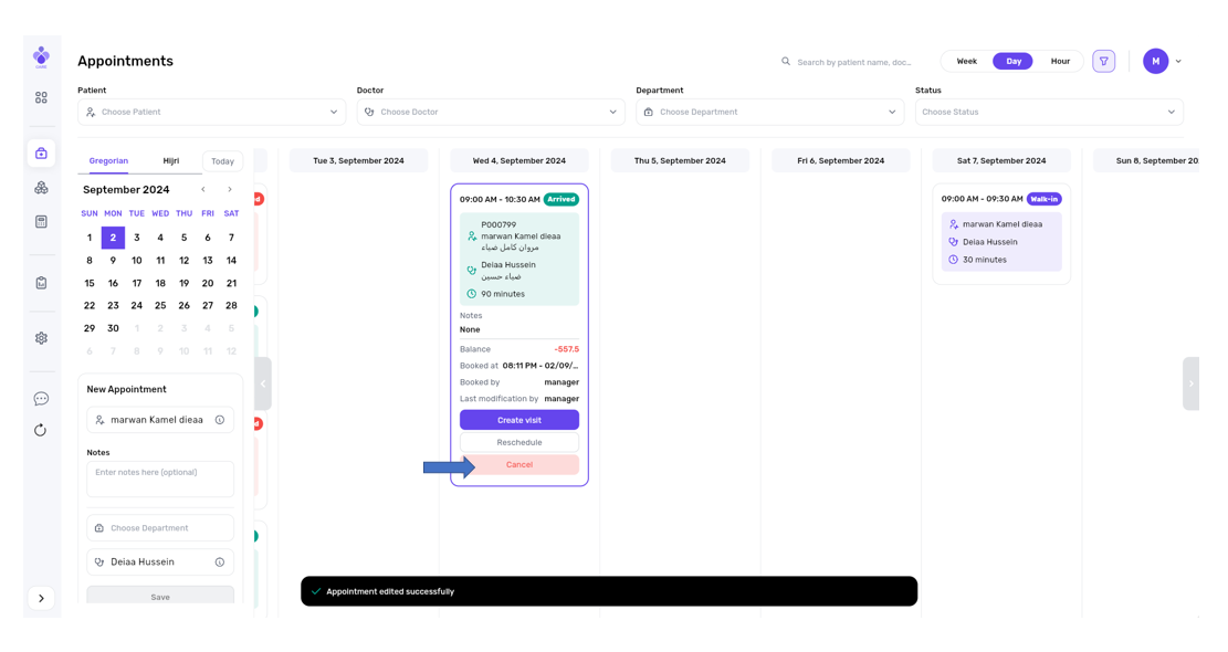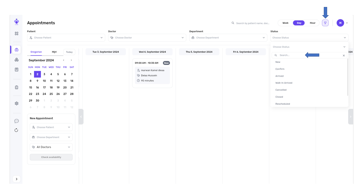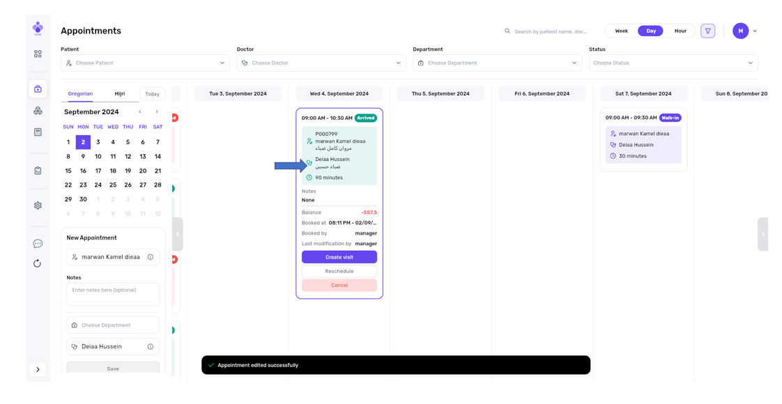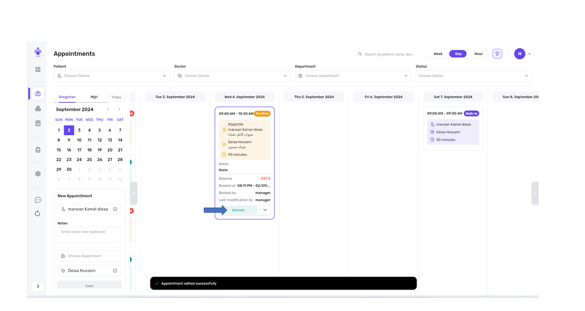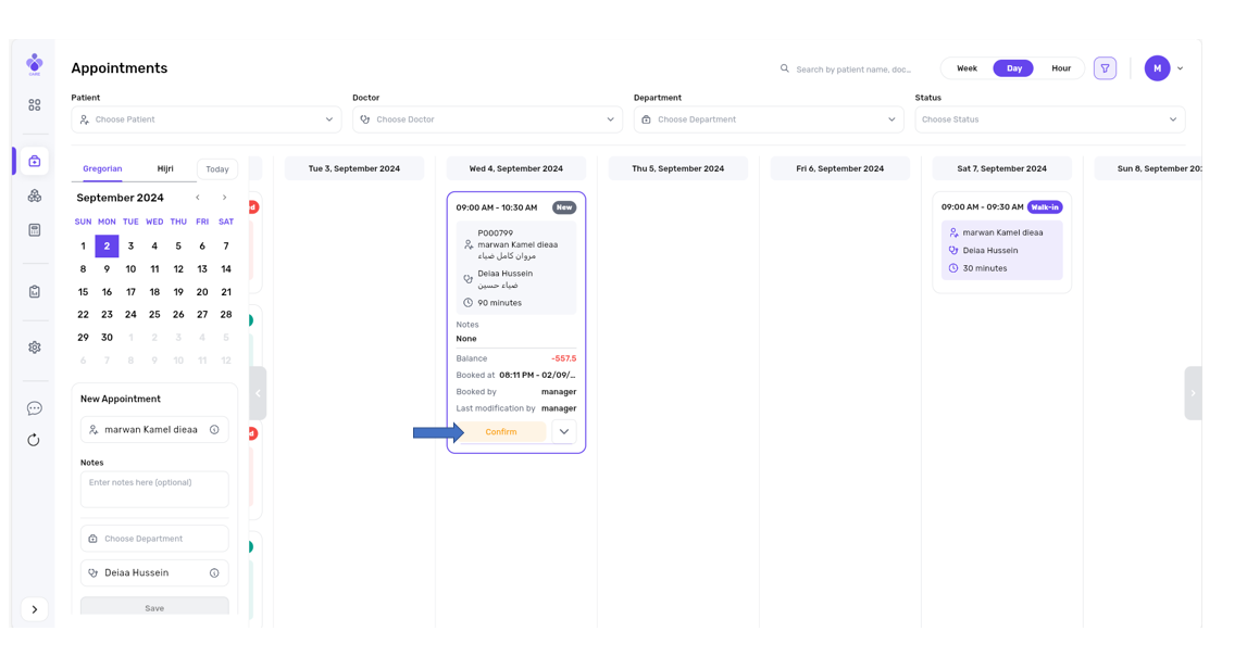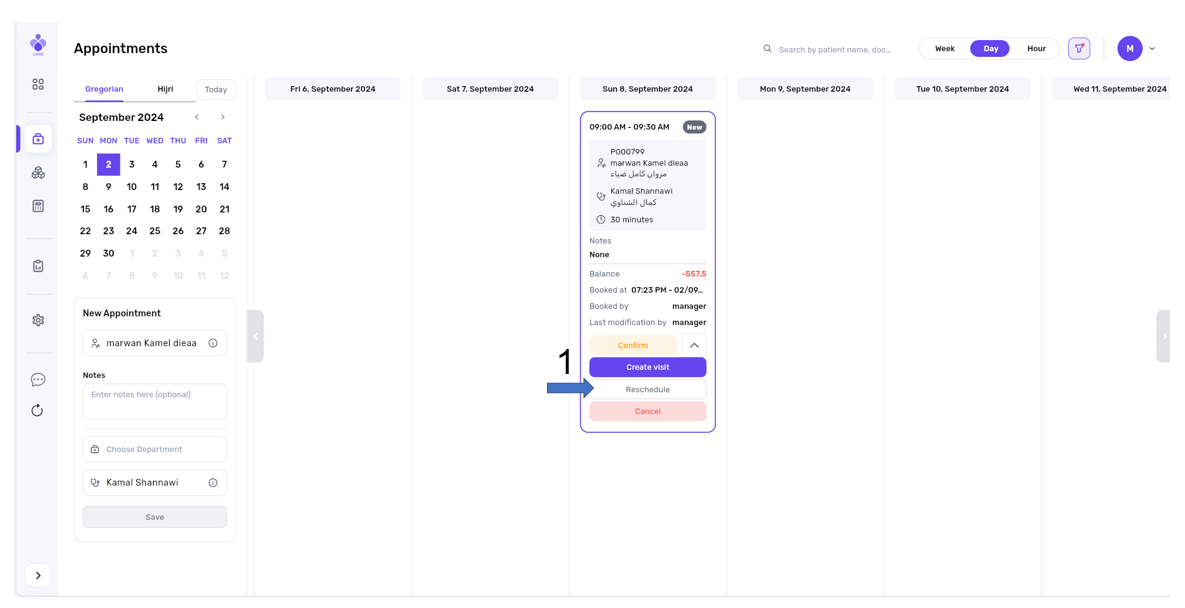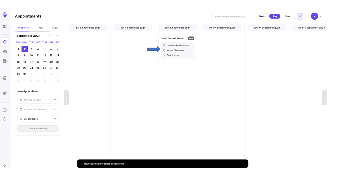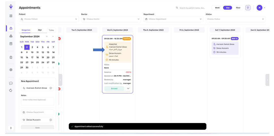 After doing the previous steps the appointment will be "new" show like the screenshot.