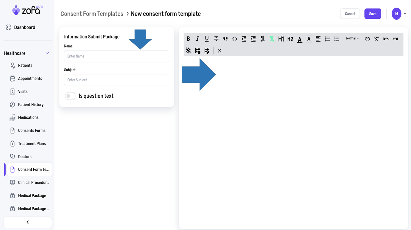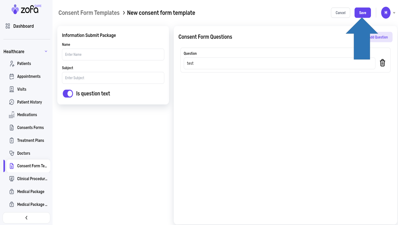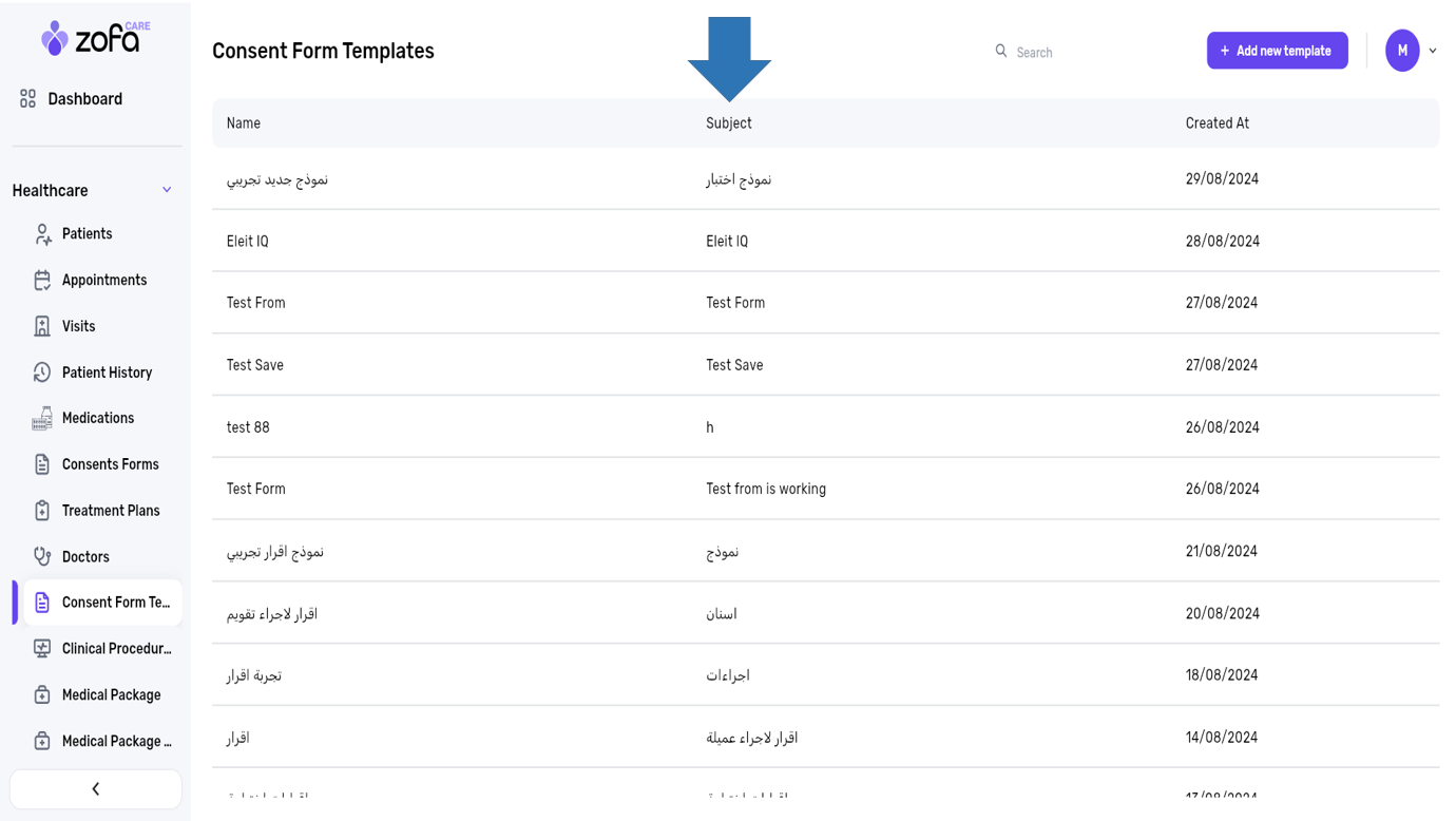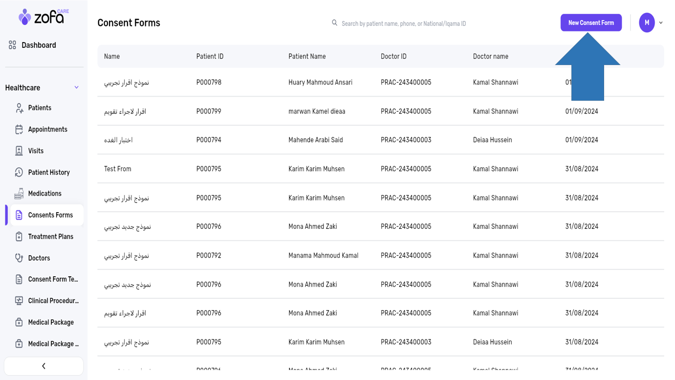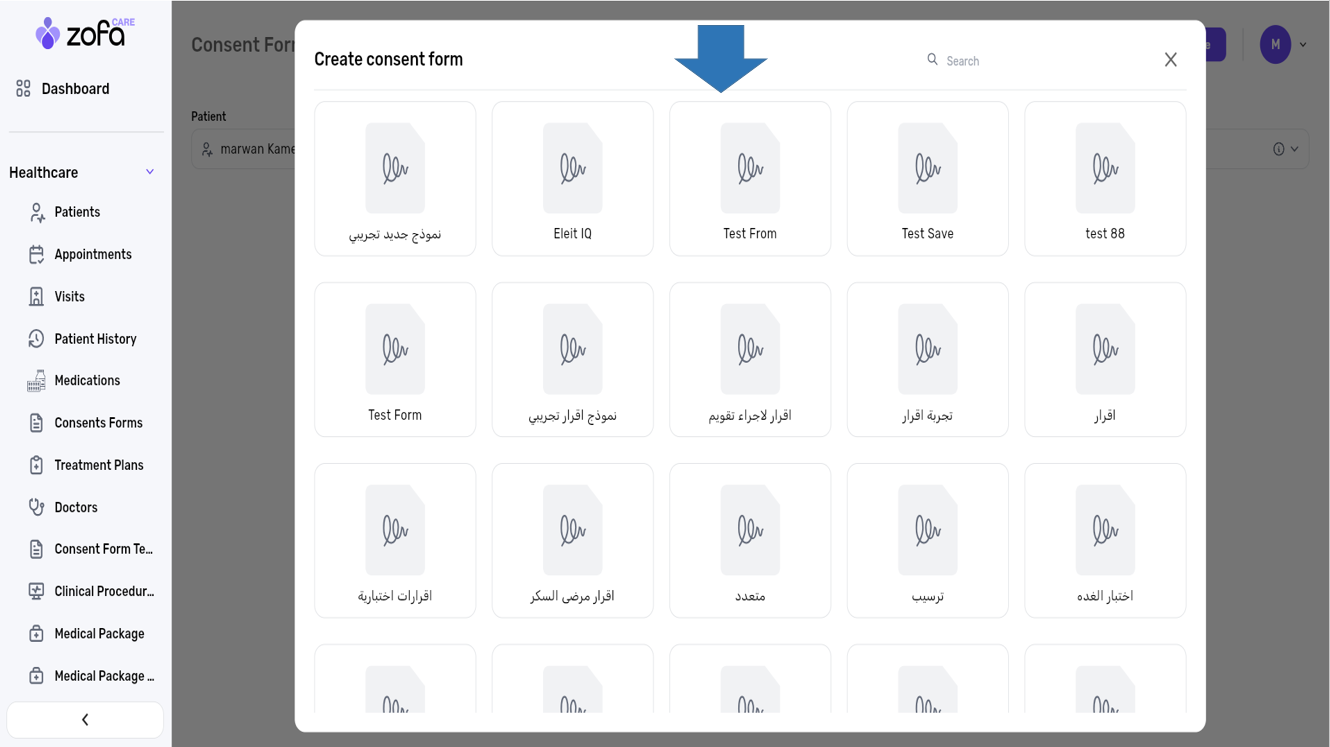 1- select the consents forms from the healthcare section