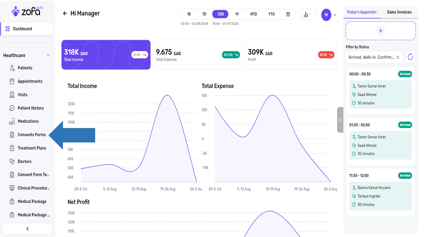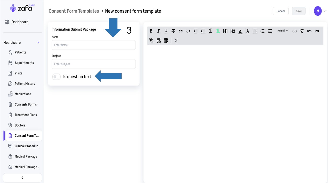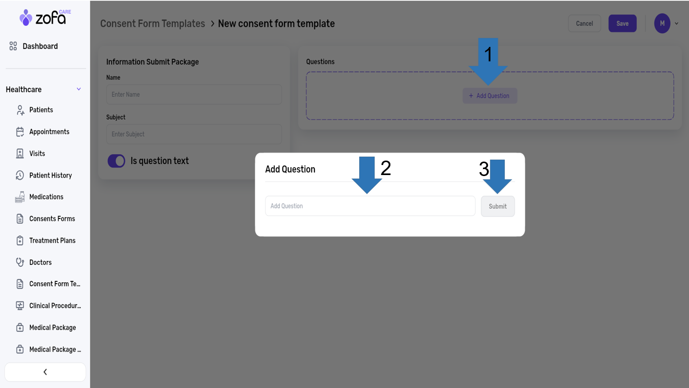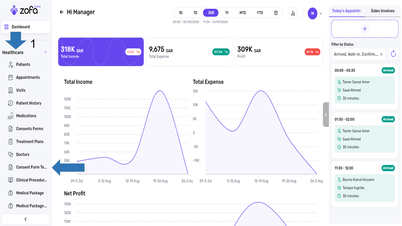 1- select the consents forms from the healthcare section