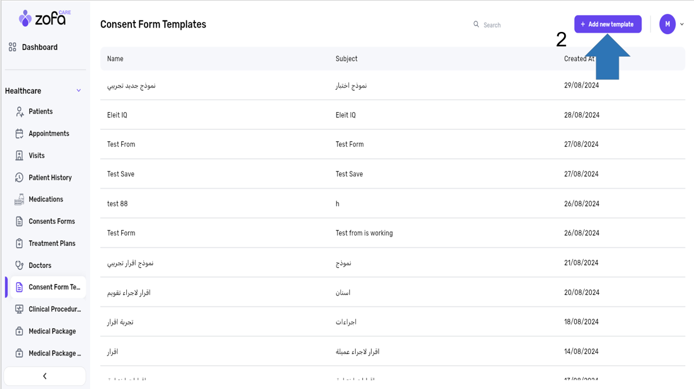 1- Select a consent form template from healthcare