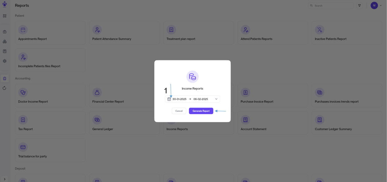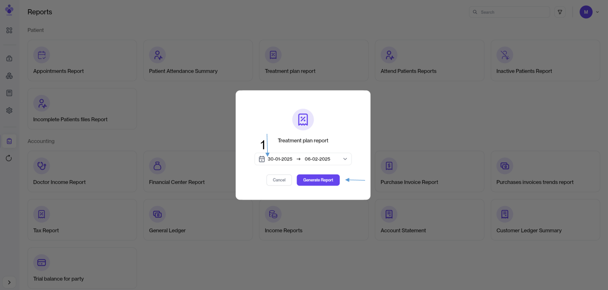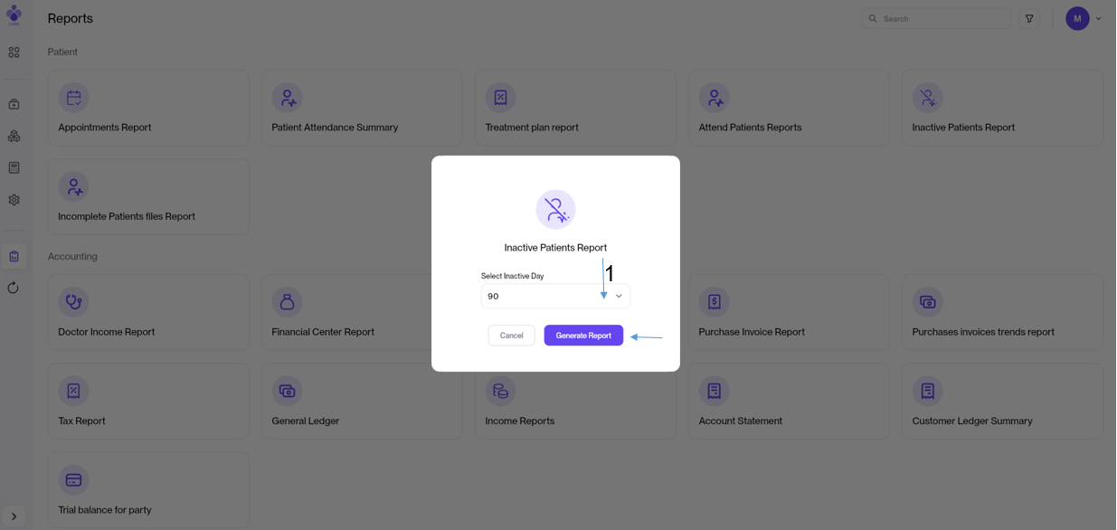 2- You can display the report by Doctor ID, Patient ID, Medical Package Template, or Owner.