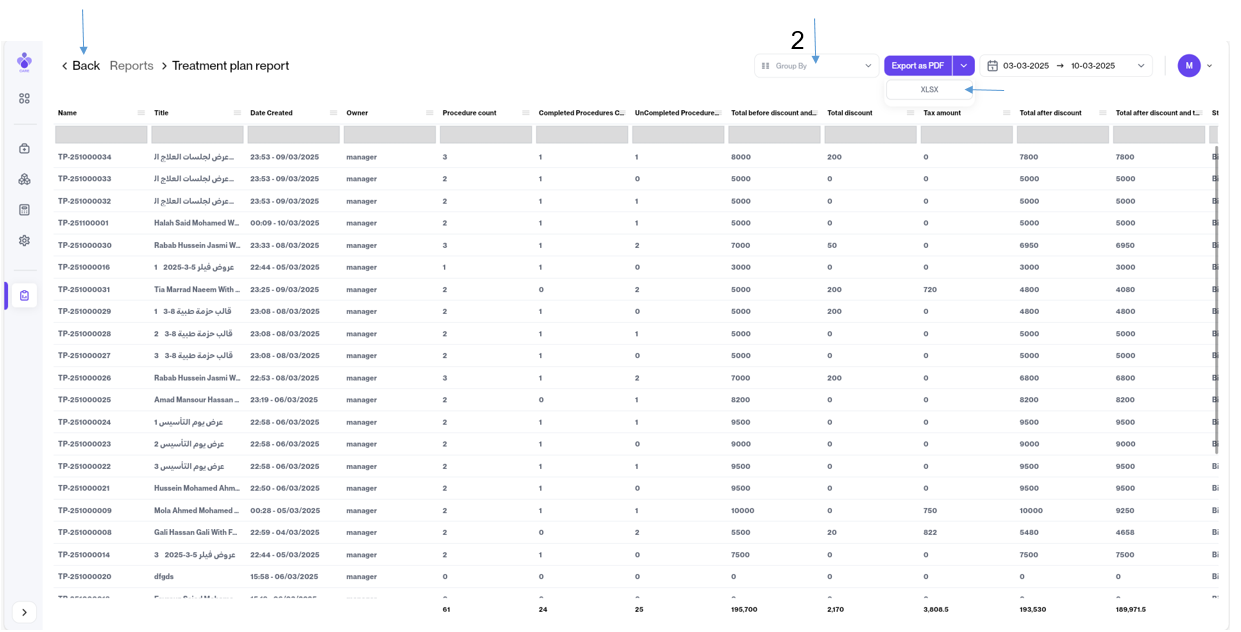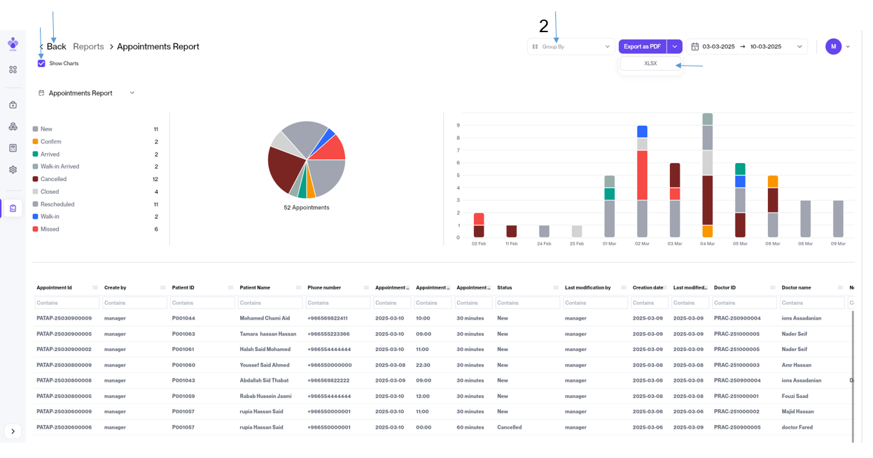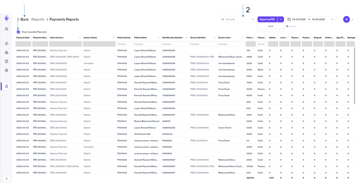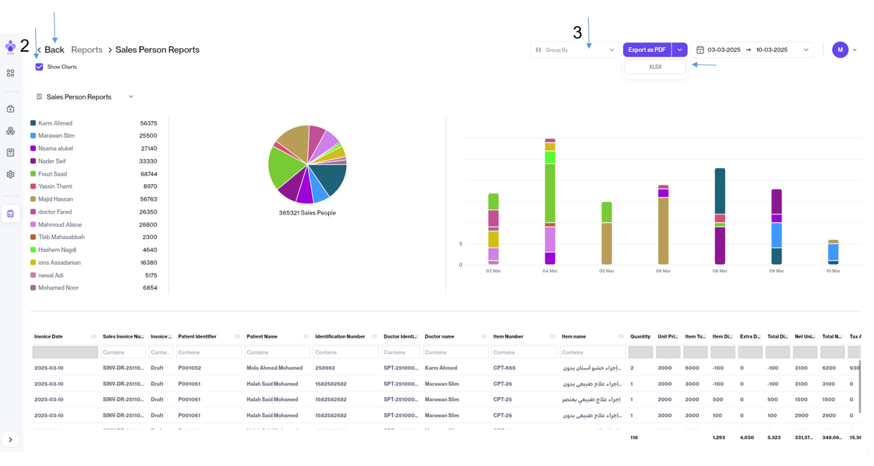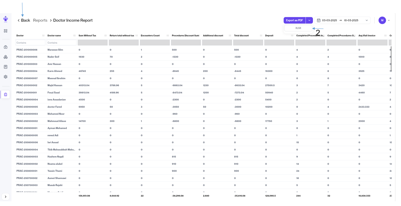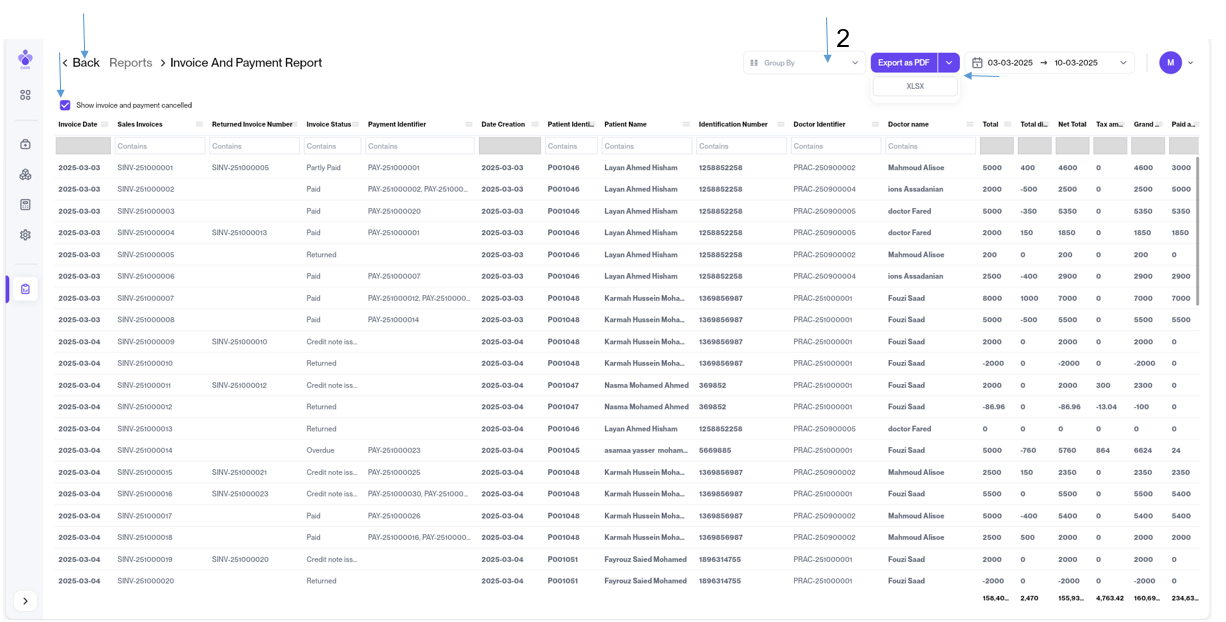 2- You can display the report by "Created By," "Patient and Doctor name and Last Modified By