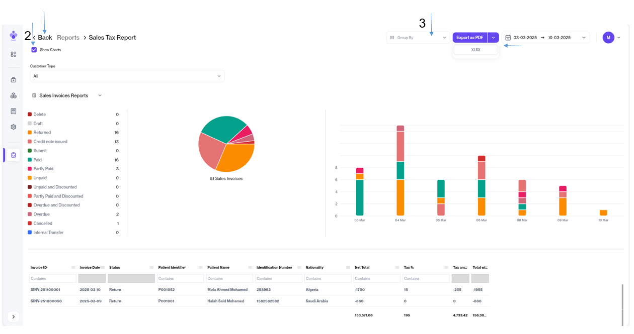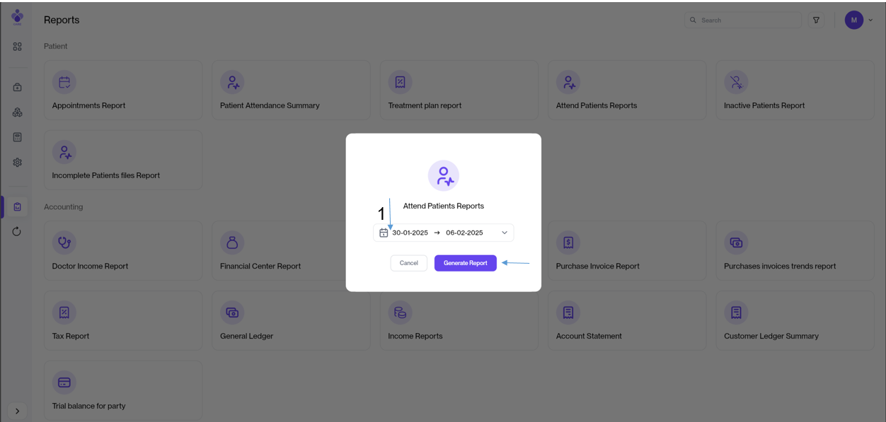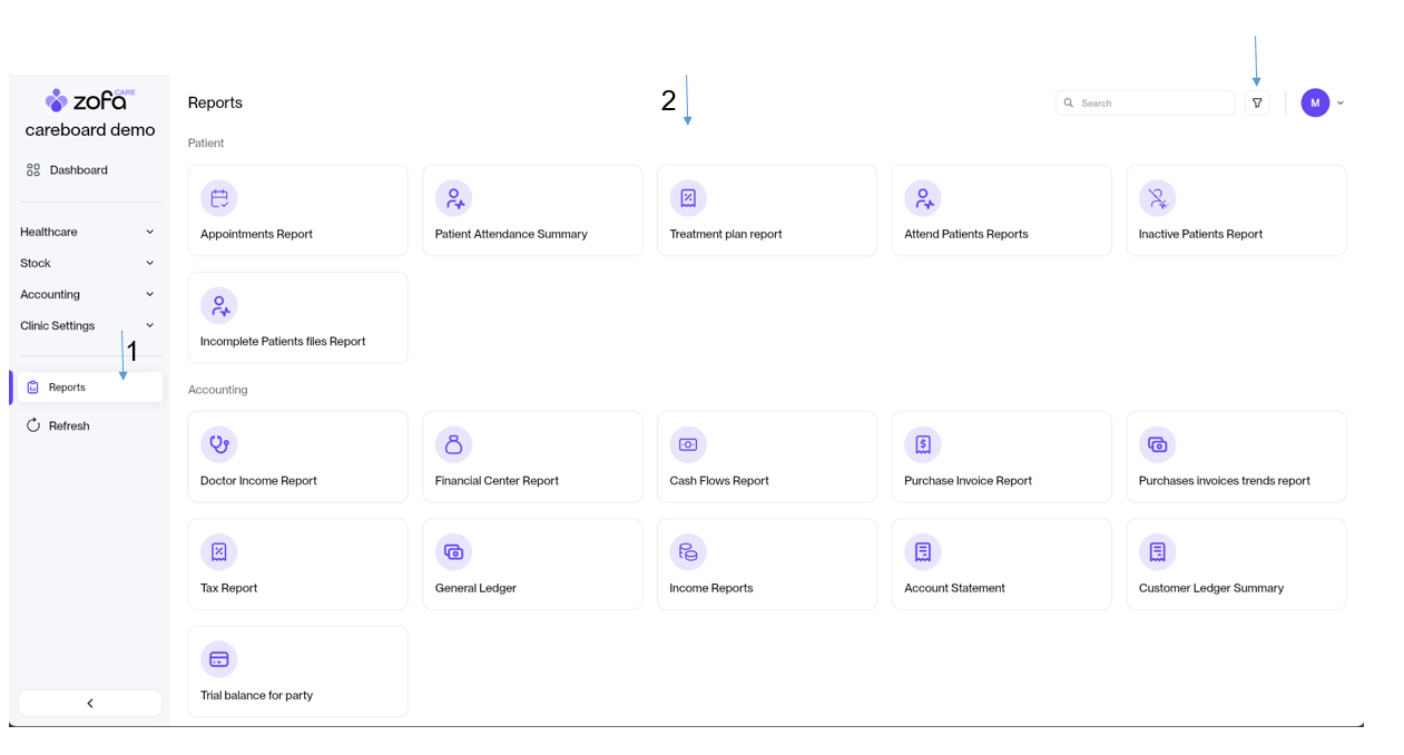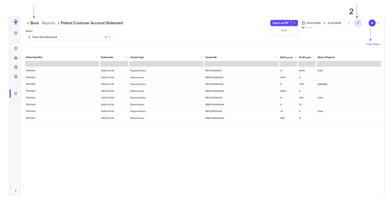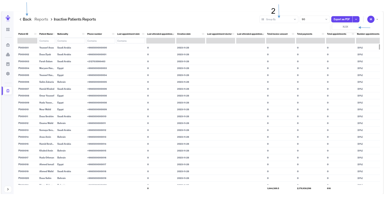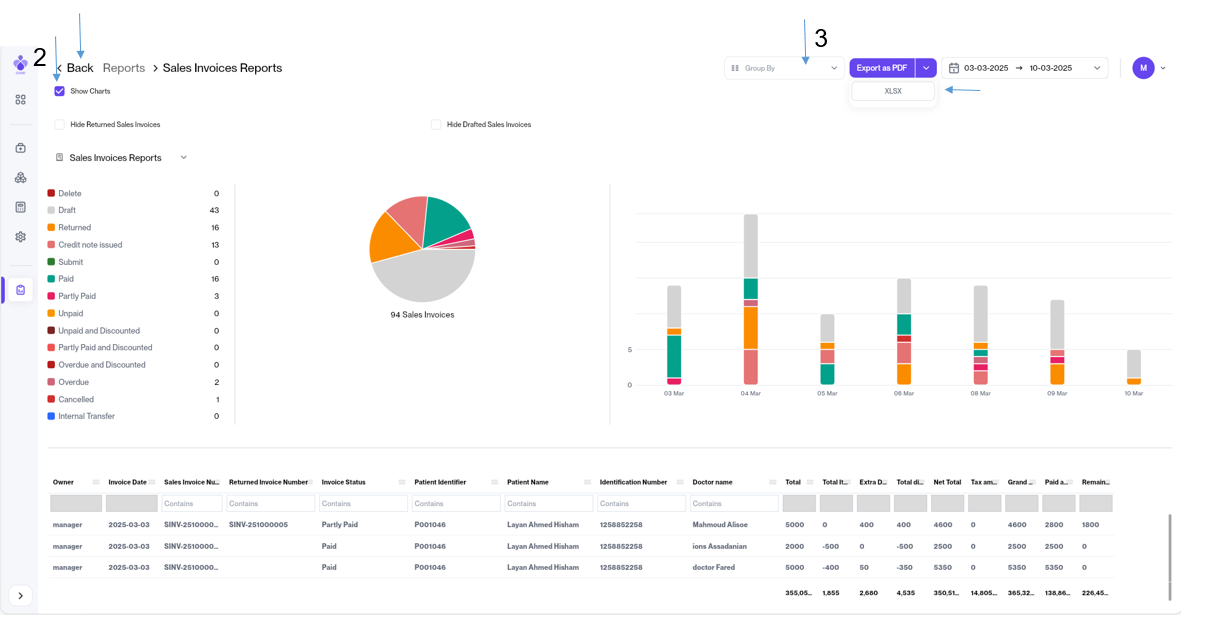 2- You can display the report by "Created By," "Patient and Doctor name and Last Modified By