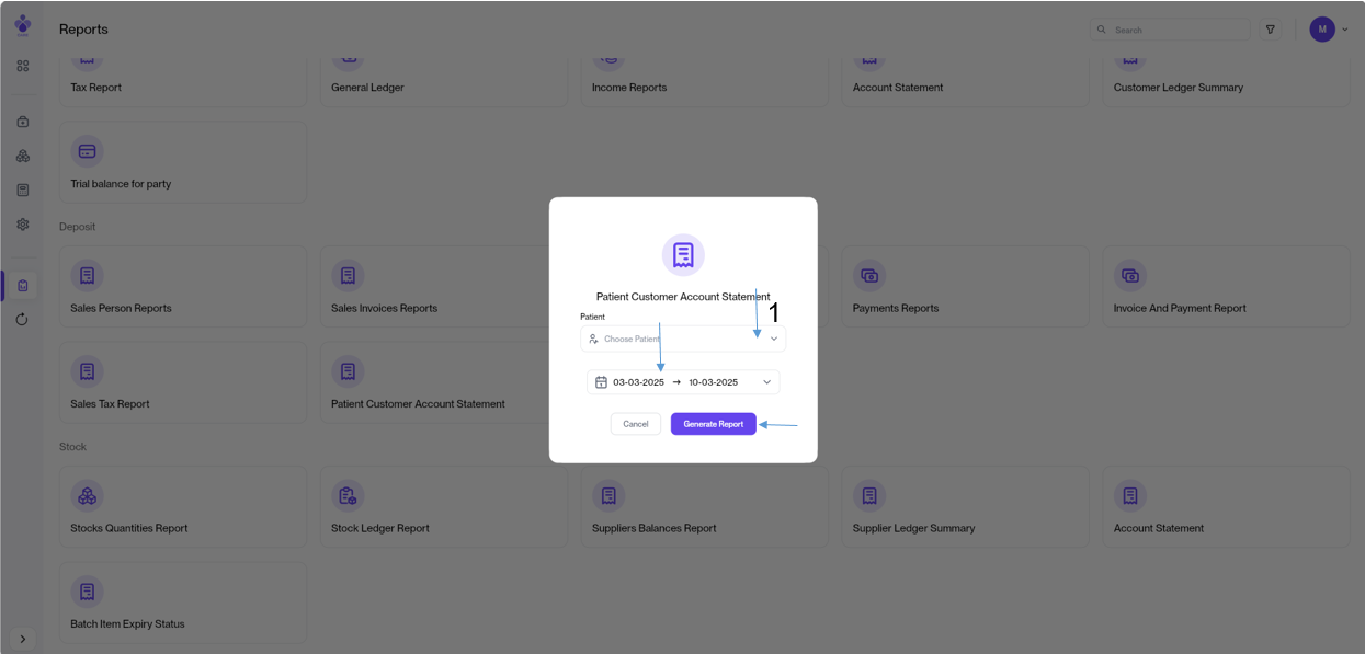 Generating and Exporting Statements for Patients, Accounting, Deposits, and Stock